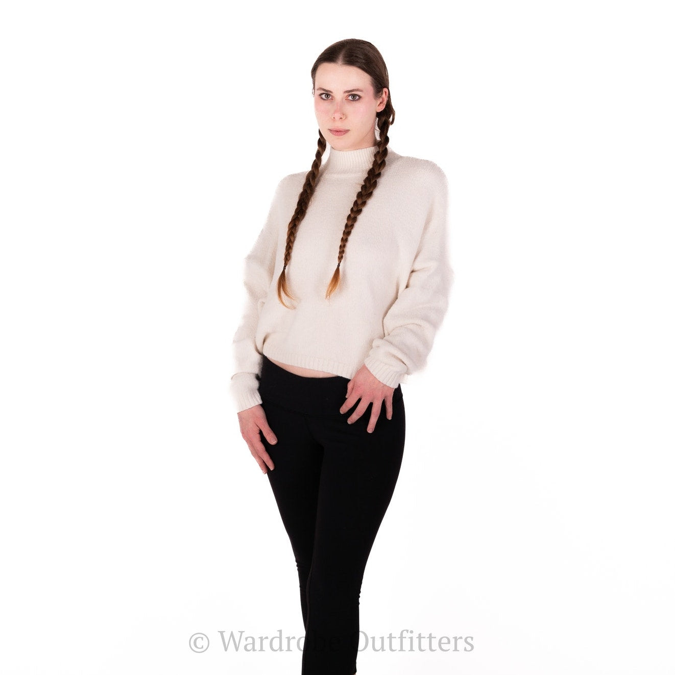 White fuzzy cream long sleeve sweater