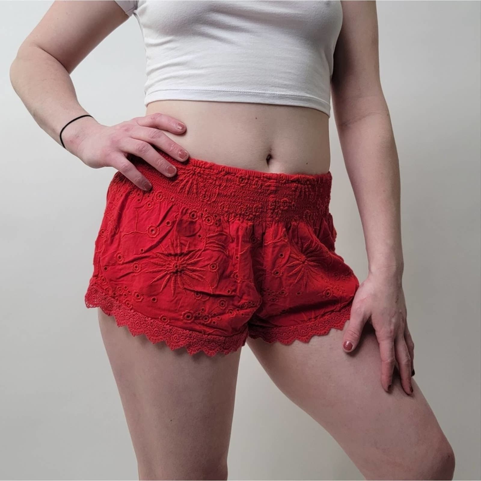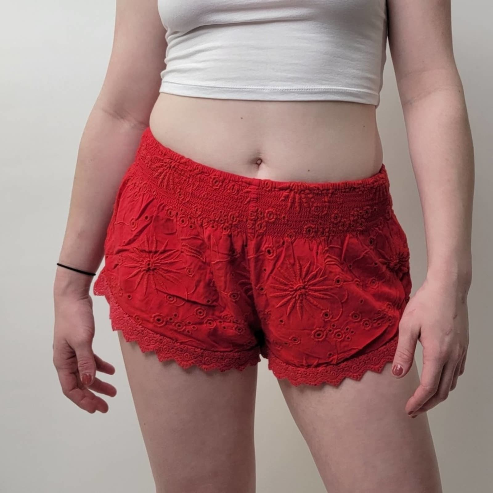 Forever 21 Lace Eyelet Pull On Red Cheeky Shorts - S