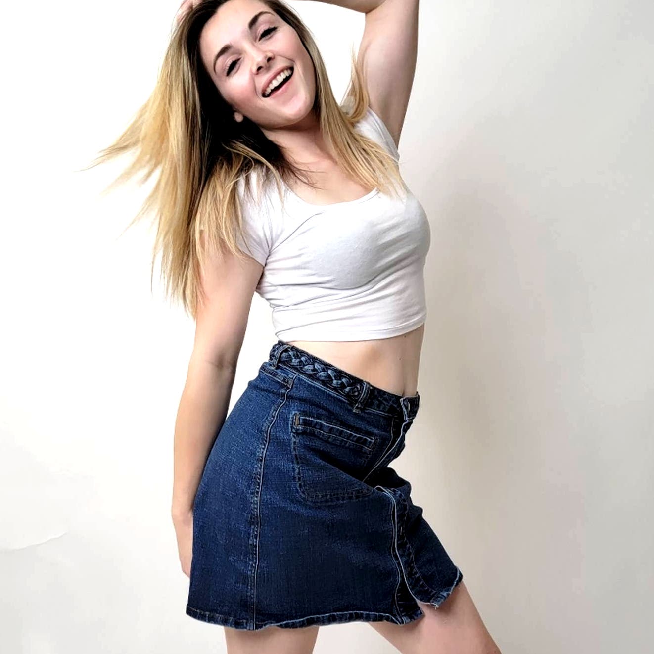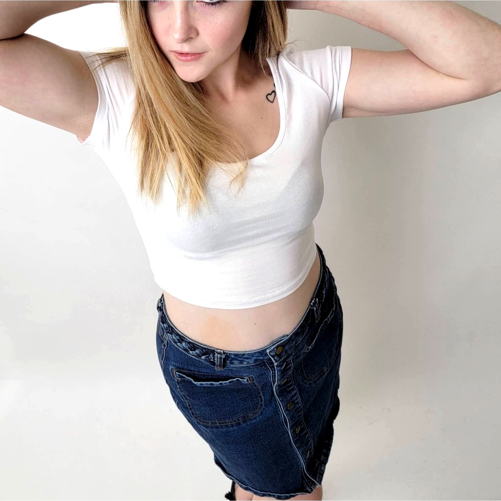 Harper Braided Button Up Denim Jean Midi Skirt - M