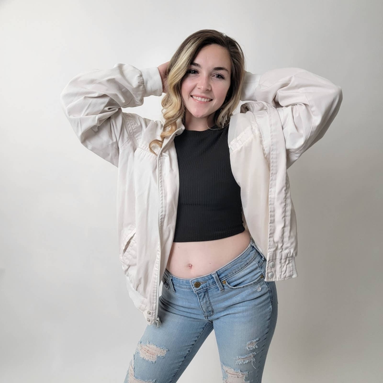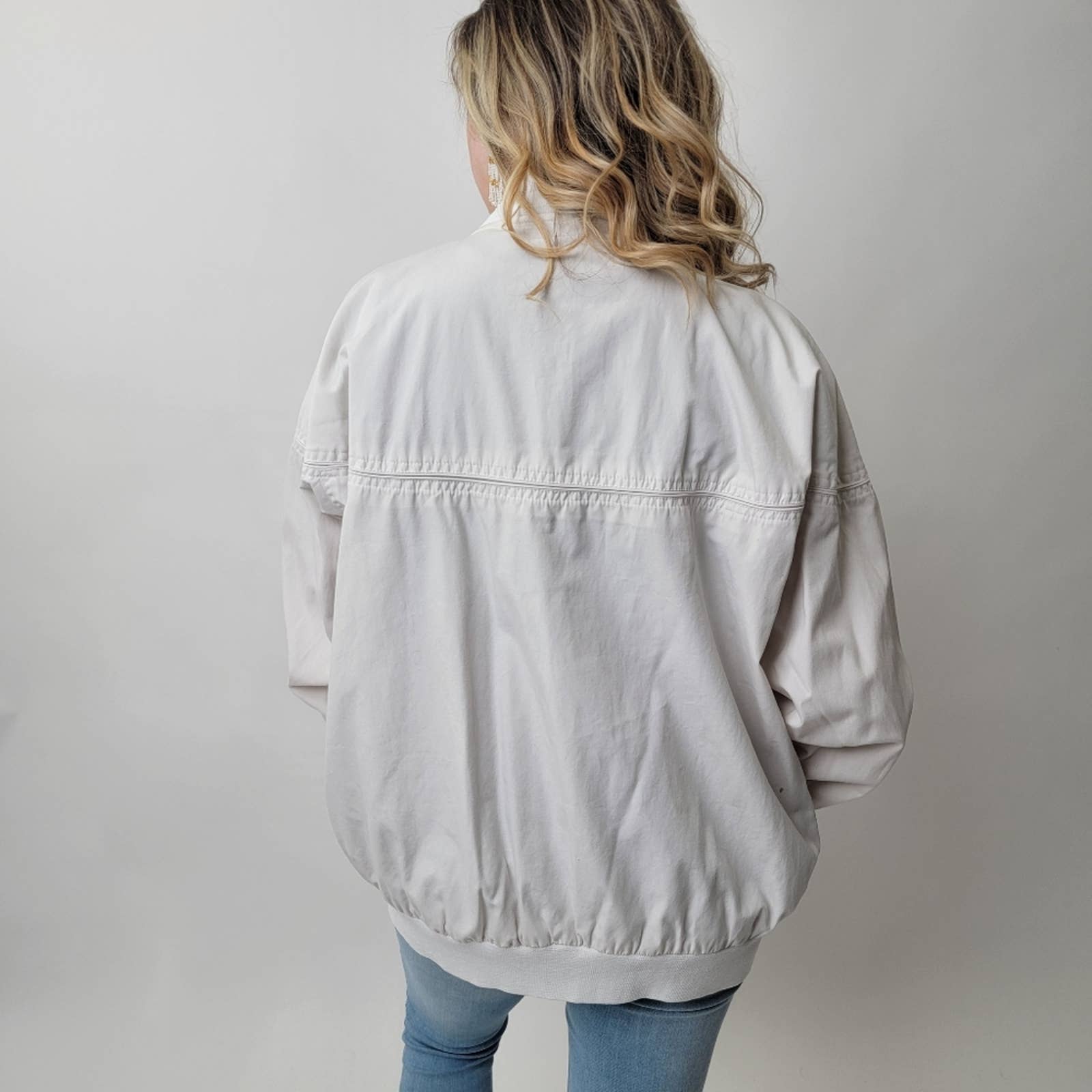Vintage 80s Haband White Bomber Track Jacket - L